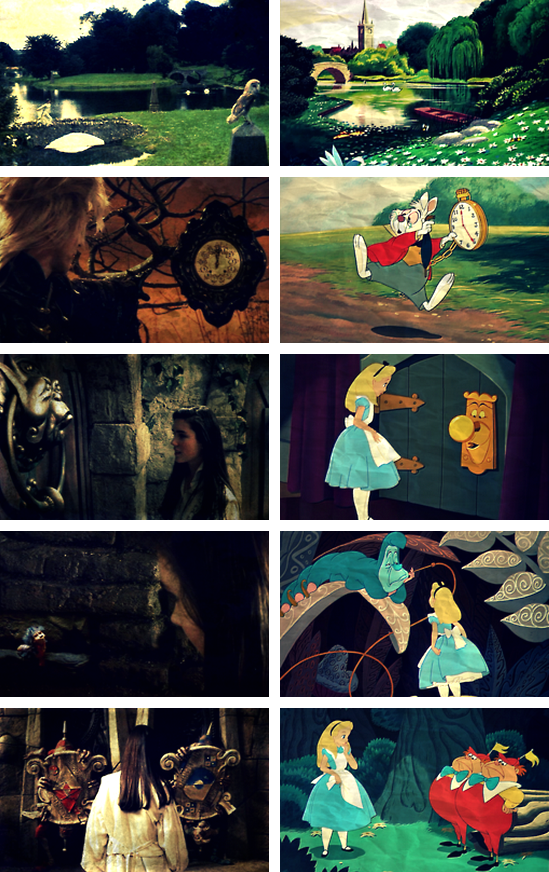 While I came up with the concept of Girls Underground, I certainly am not the first person to notice similarities between some of these stories. Especially between any of them and Alice in Wonderland (which may account for the high number of Alice references in GU books – consciously or unconsciously, the authors know what type of story they’re telling). Here’s a great visual examination of some of the parallels between the movie Labyrinth (one of the primary inspirations for Girls Underground) and Disney’s Alice movie. It’s quite remarkable.